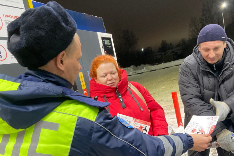 Автоинспекторы вручили всем присутствующим тематические листовки, а также оставили их специалистам автозаправочных станций для дальнейшего вручения посетителям.