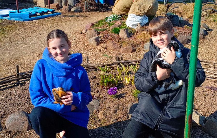 Ребята творческих объединений продолжают активно ухаживать за питомцами живого уголка, а старшеклассники-волонтёры помогают расчищать от снега территорию учебно-опытного участка, где уже зеленеет трава и расцвели подснежники и крокусы, просыпаются от зимнего сна ростки многолетних цветов, набухают почки на декоративных кустарниках и плодовых деревьях.