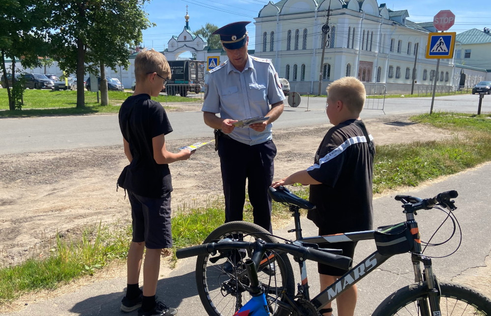 Дорожные полицейские напоминали юным участникам дорожного движения правила безопасной езды на велосипеде.
