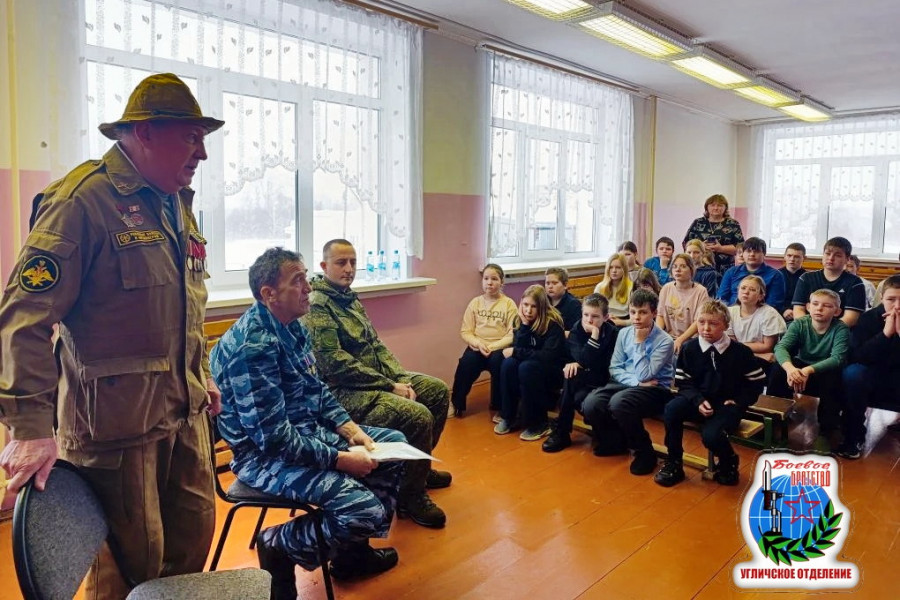 На уроке присутствовали воин-афганец Смирнов Владимир, участник СВО Алёшин Борис, член Угличского отделения «БОЕВОГО БРАТСТВА» Круглов Александр.