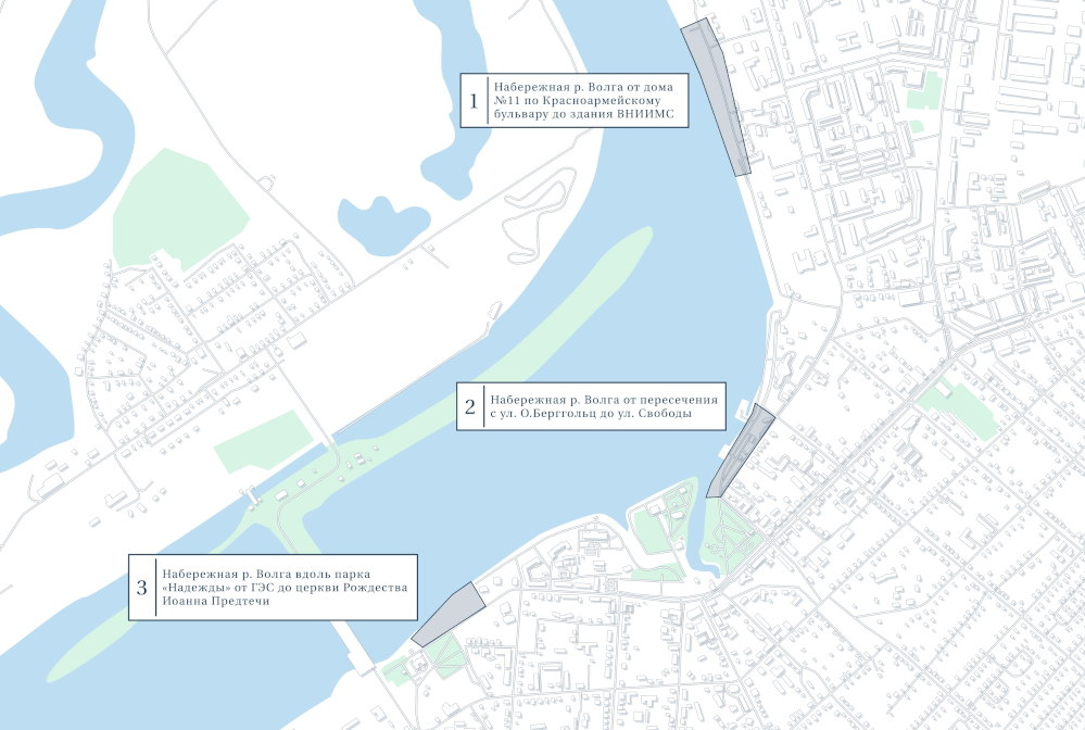 Набережная реки Волги вдоль парка «Надежды» от ГЭС до церкви Рождества Иоанна Предтечи